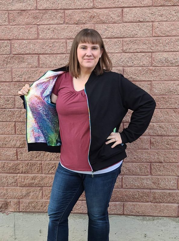 One of the biggest reasons why I like to sew is that I can create unique items that you can’t buy anywhere. Just check out this fun bomber jacket I made from Sew a Little Seam!