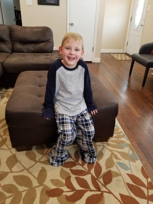 I’ve used this pattern a few times in a few different sizes. My son loves his pajama pants. Here’s a cute photo of him wearing a pair I made earlier this year: