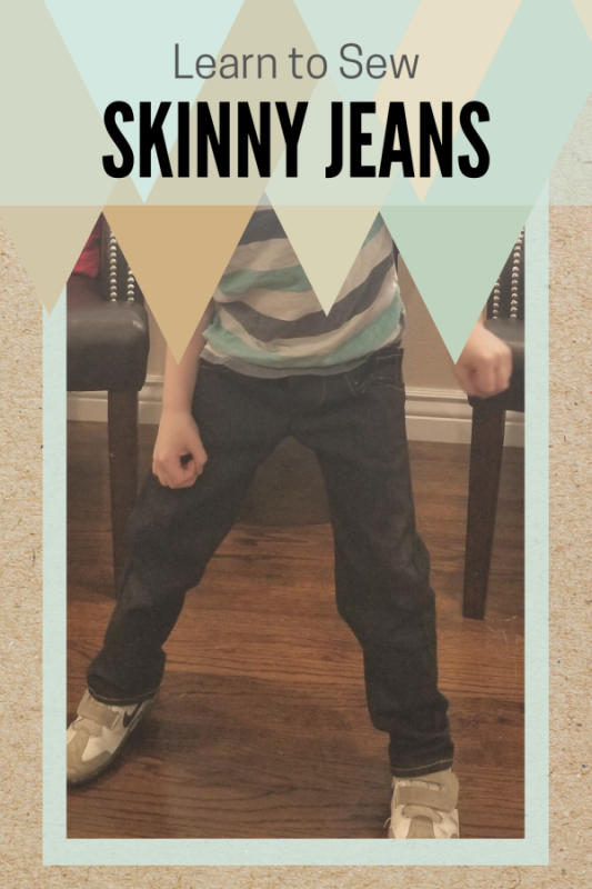 I don’t know why I didn’t sew skinny jeans for my son sooner. He is a very slim build and it’s hard to find clothes that fit him well, especially around the middle.
