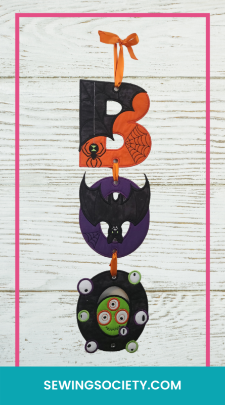 If you have an embroidery machine, and you’re looking for something fun to sew for Halloween, you have to check out the Boo Wall Hanger from Sweet Pea. It is soooo cute!