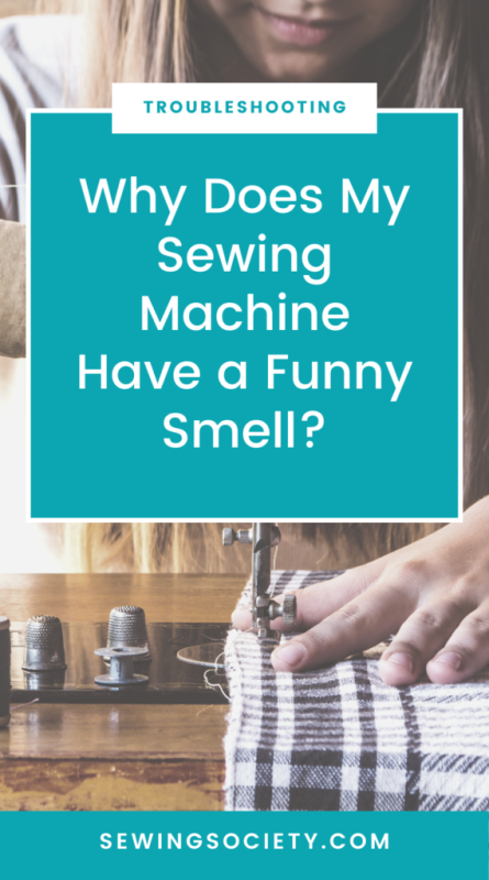 Sewing machine oil has a mild smell. If you recently oiled your machine, you might be smelling the oil as the gears in your sewing machine heat up. The smell will go away on its own after a few uses.